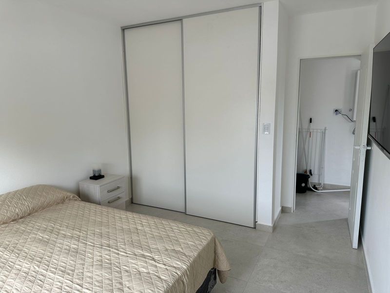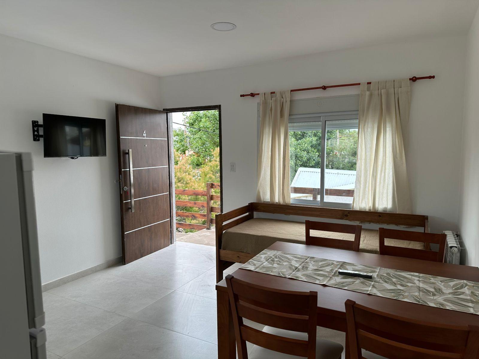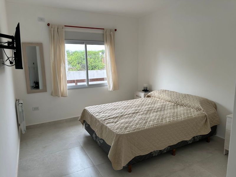 Hermoso departamento para 3 personas. Ubicado en primer piso por escalera al frente, a dos cuadras y media del mar y a 4/5 del centro . Cuenta con cocina -comedor con divan cama para una persona, tv en cada ambiente, microondas, pava electrica, tostadora, baño y un dormitorio con cama matrimonial. parrilla propia en un pequeño balcon semicubierto. 2 ventiladores turbo para cada ambiente Cochera descubierta. Hermosa zona, con muchos comercios.